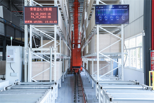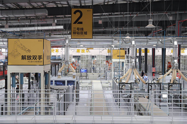 “用科技重新定義生產(chǎn)”,是索菲亞對(duì)黃岡工業(yè)4.0 車間的定義。4.0 車間實(shí)現(xiàn)原料板件從智能立體原料倉出發(fā),經(jīng)過開料、封邊、打孔、分揀、打包等工序,全部由機(jī)械臂、智能物流系統(tǒng)等自動(dòng)完成,全程不落地、不經(jīng)人手。