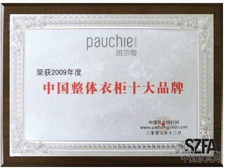 榮譽(yù)資質(zhì) 2009年中國整體衣柜十大品牌
