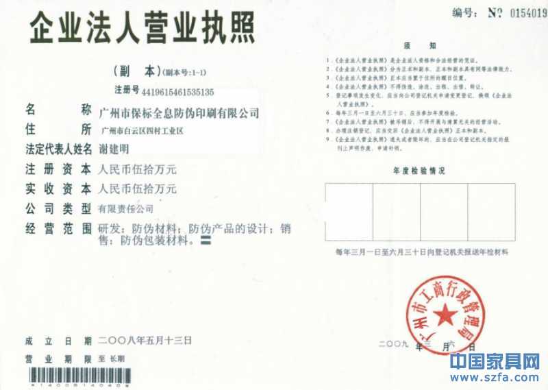 | 發(fā)證機(jī)構(gòu): | 工商局 | 發(fā)證時(shí)間 : | 2008-05-13 |