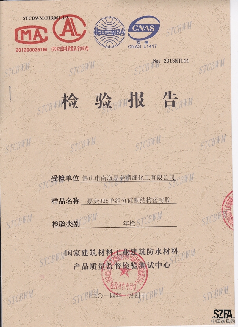 | 發(fā)證機(jī)構(gòu): | 國(guó)家建筑材料工業(yè)建筑防水材料產(chǎn)品質(zhì)量檢驗(yàn)監(jiān)督測(cè)試中心 | 發(fā)證時(shí)間 : | 2014-01-04 |