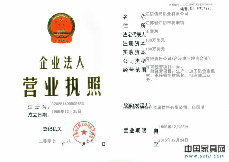 | 發(fā)證機(jī)構(gòu): | 無錫市江陰工商行政管理局 | 發(fā)證時(shí)間 : | 1995-12-25 |