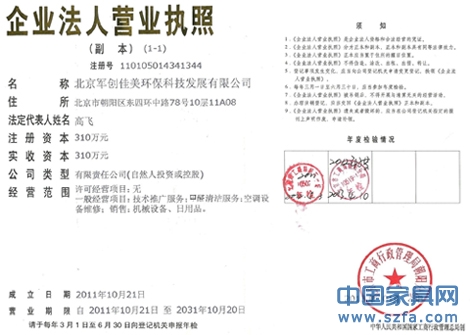 | 發(fā)證機(jī)構(gòu): | 北京市工商行政管理局朝陽分局 | 發(fā)證時間 : | 2011-10-21 |