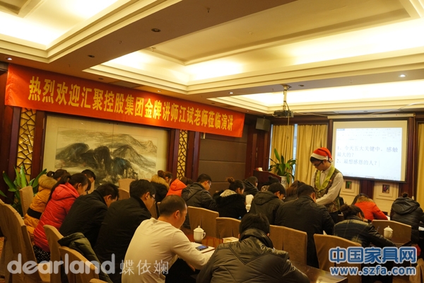 2012年12月24日,蝶依斕家居布藝湖南公司誠邀匯聚國際教育集團(tuán)金牌講師江斌老師,進(jìn)行了一次《真正的執(zhí)行》培訓(xùn)課程。蝶依斕家居布藝公司花重金舉辦這次培訓(xùn)課程,旨在培養(yǎng)和建設(shè)一支素質(zhì)高、執(zhí)行力強的優(yōu)秀企業(yè)團(tuán)隊,提高員工工作效能和職業(yè)素養(yǎng)。蝶依斕湖南公司本部20多名中高層管理人員參加此次課程,公司董事總經(jīng)理陳紅英、董事副總經(jīng)理卿科華、董事副總經(jīng)理陳章毅也紛紛到場接受了培訓(xùn)。