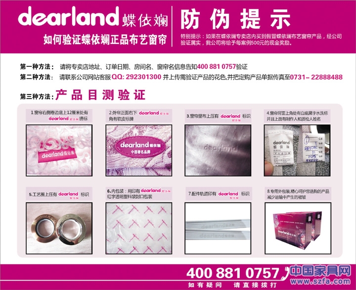 第一種方法:可將專賣店的地址、訂單日期、房間名、窗簾名信息,通過400電話(400-881-0755)驗證真假;