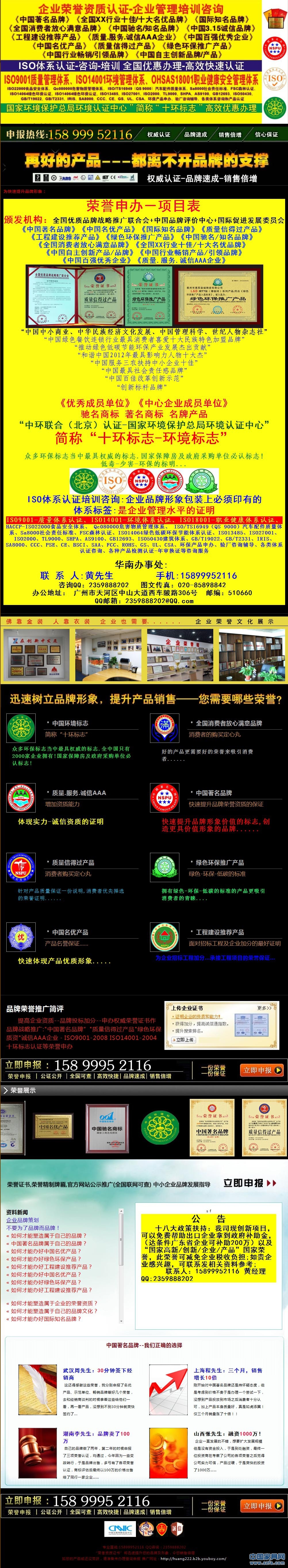 國家權(quán)威機(jī)構(gòu)認(rèn)證申辦:《中國著名品牌》《中國名優(yōu)產(chǎn)品》《質(zhì)量信得過產(chǎn)品》《全國XX行業(yè)十佳名優(yōu)品牌》《質(zhì)量.服務(wù).誠信AAA單位》《全國消費(fèi)者放心滿意品牌》《綠色環(huán)保推廣產(chǎn)品》《中國工程建設(shè)推薦產(chǎn)品》《國際知名品牌-中英版》《廣東省名牌產(chǎn)品》《廣東省著名商標(biāo)》《中國環(huán)境(十環(huán))標(biāo)志》各項(xiàng)ISO環(huán)境體系認(rèn)證CCC認(rèn)證等多項(xiàng)品牌產(chǎn)品榮譽(yù)證書申辦,海內(nèi)外商標(biāo)專利注冊及公司工商注冊,擁有龐大的服務(wù)網(wǎng)點(diǎn),高覆蓋、高效率的服務(wù)獲得多家公司和機(jī)構(gòu)的認(rèn)可。將以最專業(yè)的精神為您提供安全、經(jīng)濟(jì)、專業(yè)的服務(wù)。聯(lián)系人:15899952116黃經(jīng)辦