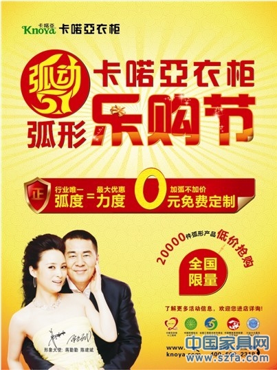 卡喏亞衣柜弧形樂購節(jié)來了!好衣柜攜手陳建斌、蔣勤勤夫婦舉辦“弧動五一”樂購盛會,讓家具弧動起來!150度弧線設計,行業(yè)唯一弧度,最潮最先進,別家都沒有!在樂購節(jié)期間,卡喏亞以最大的優(yōu)惠力度感恩全國億萬消費者!20000件弧形產品低價搶購,全國限量,錯過就是遺憾!還有加弧不加價,0元免費定制等震撼巨惠,不參與就遺憾!讓我們一起弧動五一,High翻整個五月!
