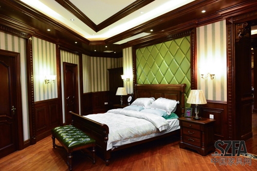古香古色的衣柜、書櫥、墻板、木門及高靠背大床,甚至燈具,都是做舊復(fù)古的寫意,讓人不禁追思久遠(yuǎn)的情愁,仿佛穿越時(shí)光隧道,遁回上世紀(jì)歐洲的貴族人家。