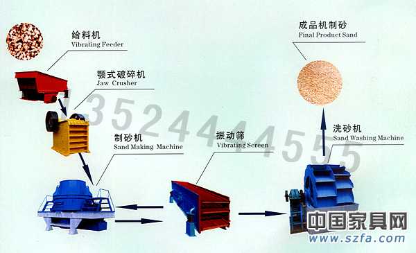 我公司生產的全套制砂生產線設備,為您提供全面的技術支持,制砂生產線通常由振動給料機、顎式破碎機、直通沖擊式破碎機(制砂機)、振動篩、洗砂機、膠帶輸送機、集中電控等設備組成;制沙生產線設計產量一般為50-500噸/小時。
