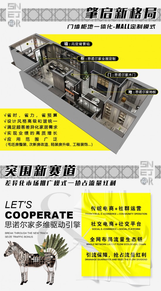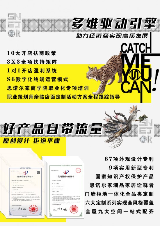 隨著國(guó)內(nèi)消費(fèi)者需求越來(lái)越趨向于差異化,具備個(gè)性化和創(chuàng)新思維的家居品牌越來(lái)越受消費(fèi)者的青睞。思諾爾家全面布局渠道流量生態(tài)鏈,為終端經(jīng)銷商多維助力,通過(guò)調(diào)整產(chǎn)品及服務(wù),順應(yīng)市場(chǎng)發(fā)展趨勢(shì),憑借強(qiáng)大的研發(fā)設(shè)計(jì)團(tuán)隊(duì),將潮品家居與環(huán)保健康融合的家居理念推行,成為引領(lǐng)行業(yè)風(fēng)向標(biāo)。思諾爾家將繼續(xù)聚焦行業(yè)發(fā)展趨勢(shì),全方位賦能經(jīng)銷商發(fā)展,公司更是針對(duì)經(jīng)銷商的日常管理進(jìn)行商學(xué)院職業(yè)化培訓(xùn),資深活動(dòng)策劃師駐店指導(dǎo)等,令思諾爾家的終端旗艦店完成從定制門店到定制服務(wù)商的轉(zhuǎn)變,極大滿足了顧客的家居需求,更實(shí)現(xiàn)了業(yè)績(jī)的快速增長(zhǎng)。全方位的保障為經(jīng)銷商們帶來(lái)輕資產(chǎn)、高回報(bào)以及更強(qiáng)的抗風(fēng)險(xiǎn)能力,實(shí)現(xiàn)經(jīng)銷商與品牌的高質(zhì)發(fā)展!