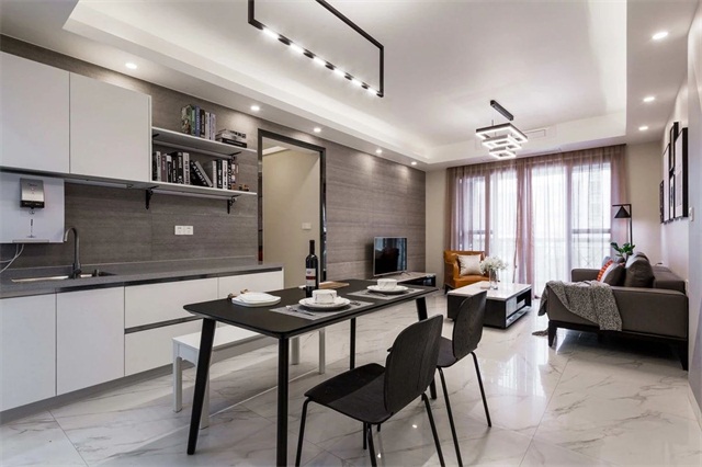 大理石和爵士白地面相呼應(yīng),盡享用餐好時(shí)光。
