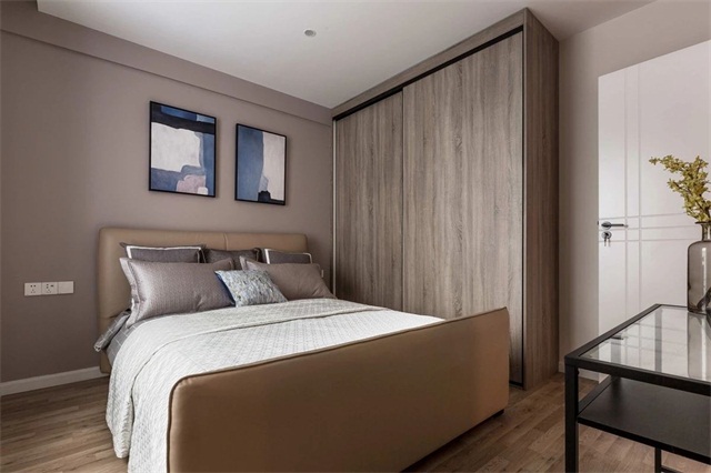 設(shè)計(jì)師選擇推拉門衣柜,原因是給床與衣柜之間留出活動(dòng)的空間。