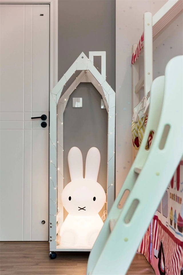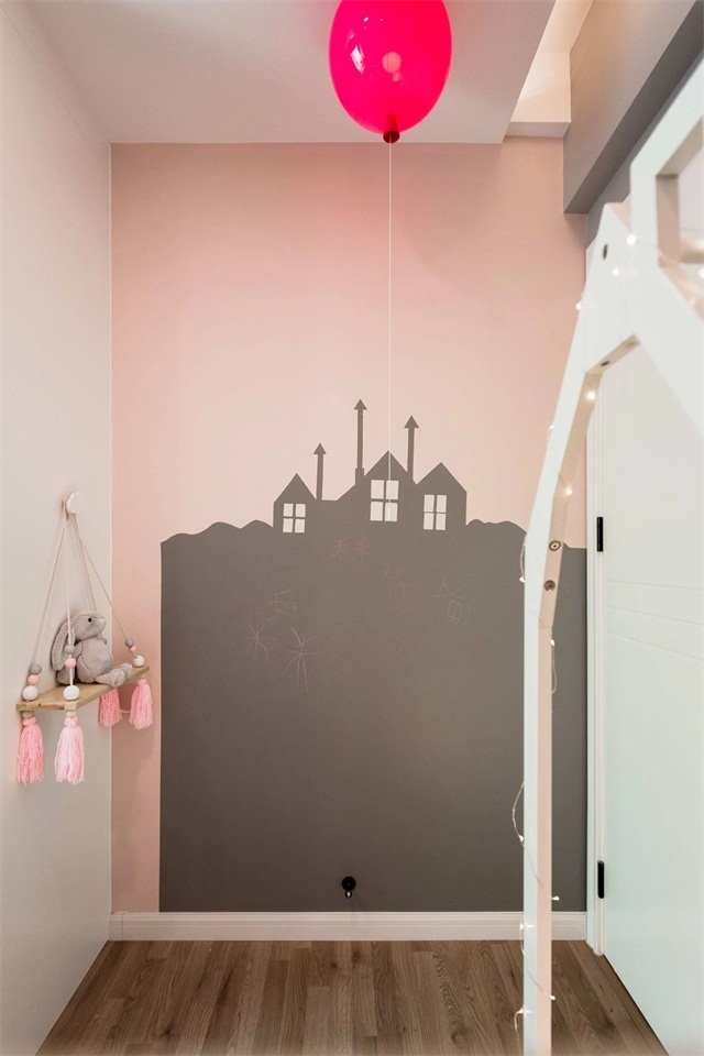 兒童房以粉色和灰色為主色調(diào),創(chuàng)造出一個(gè)夢(mèng)幻、愉悅的空間。