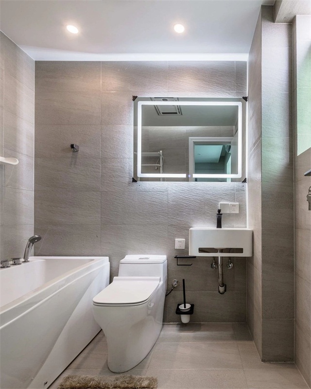 主衛(wèi)空間雖然很小,但為了滿足男主的愛(ài)好,特此設(shè)計(jì)一個(gè)小浴缸。