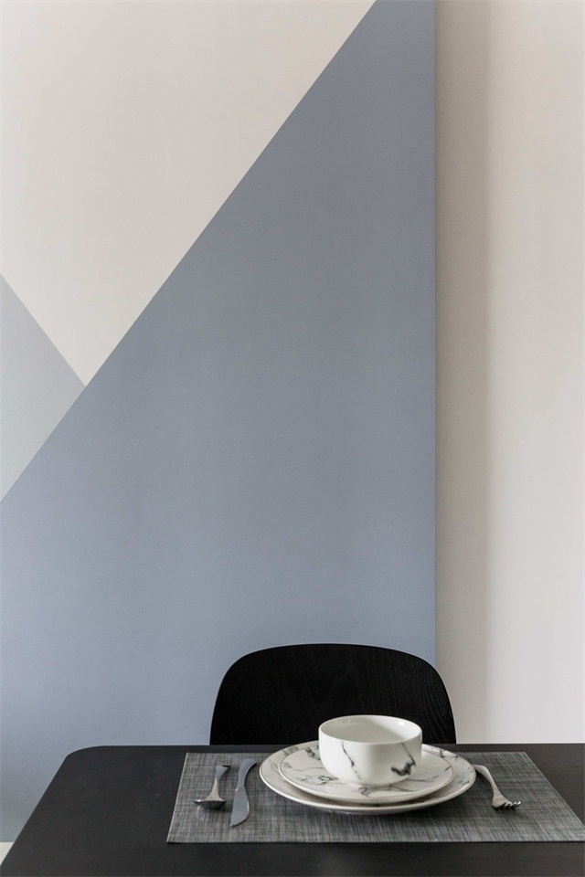 客廳簡(jiǎn)潔的線條和自然幾何造型的彩色背景墻相互映襯,富有立體感。