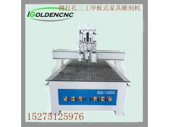 新星數(shù)控氣動三頭(雙)雕刻機是數(shù)控機電一體化產(chǎn)品,采用國際標準指令,可以連接CAD/CAM系列軟件,三(兩)個機頭采用氣泵控制可任意切換,能夠輕松完成計算機設計的各種程序,三(兩)把可任意切換,適合于木門家具生產(chǎn)中的一次有多種花形的產(chǎn)品,技術水平完全等同于美國同類最新設備。速度極快,切割10MM密度板速度可達:15米/分!切割20MM密度板速度可達:8米/分!一臺頂五臺!