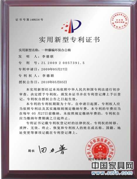 本實(shí)用新型專(zhuān)利產(chǎn)品解決了上述弊端,提供透氣、環(huán)保、無(wú)異味、耐磨、不變型、不掉色、舒適、使用壽命長(zhǎng)、再生利用率高、結(jié)構(gòu)精致、造型獨(dú)特等等功能。這種藤編環(huán)保辦公椅采用異型鋁合金骨架、旋轉(zhuǎn)椅腳和符合國(guó)際環(huán)保標(biāo)準(zhǔn)的仿真編織藤帶,利用現(xiàn)代人體力學(xué)知識(shí)設(shè)計(jì)制作而成,整體給人感覺(jué)既帶有古典韻味又不失時(shí)尚的簡(jiǎn)約風(fēng)格,滿(mǎn)足現(xiàn)代人的審美情趣。感性和理性的并存彰顯高雅與恬靜;綠色環(huán)保的主張,更符合時(shí)代的潮流和品味。