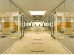 40單玻隔墻由12mm整片式玻璃頂天立地搭配鋁型材組合而成,頂?shù)撞康男筒拿娓?5mm,玻璃模塊和轉(zhuǎn)角之間型材寬為30mm,型材表面呈弧形,玻璃與型材之間采用特制膠條密拼,隔音效果良好,外觀極為雅致,利用最佳自然光,根據(jù)需要可在玻璃上貼磨砂膜,貼膜可隨時(shí)去除,無(wú)需更換玻璃??墒芭鋫鹘y(tǒng)木門、地彈簧玻璃門、合頁(yè)玻璃門等,配置不同款式的鎖體、把手、門控設(shè)備,還可以85H、85G、100系列連接搭配。