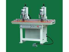 該機(jī)一次可以加工垂直位置6個(gè)孔位,其中2個(gè)大孔為鉸鏈頭孔,4個(gè)為裝配螺絲孔。2次定位可鉆4個(gè)門的鉸鏈孔,是生產(chǎn)中小型板式家具的理想工具。