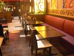 此款西餐廳桌椅成為各大西餐廳的必備之品.大方,經(jīng)典,而且非常實(shí)用. 西餐廳桌椅可以根據(jù)西餐廳裝修環(huán)境做成不同的色調(diào),同時也給西餐廳增添了炫麗,優(yōu)雅之感。所有西餐廳桌椅尺寸顏色均可根據(jù)客戶的要求來訂做。