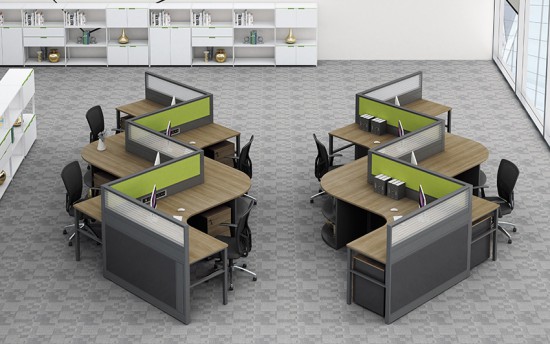 ● 屏風(fēng):厚度可以32mm,42mm或56mm,,鋁合金框架,型材厚度1.5mm,表面陽(yáng)極氧化處理,四向連接,方形邊蓋,屏風(fēng)可進(jìn)行水平調(diào)節(jié),屏風(fēng)踢腳及桌上走線槽具備走線分線管理功能,并預(yù)留插座開(kāi)孔。材料可選:絨布、防火板、鋼板加絨布或者玻璃。