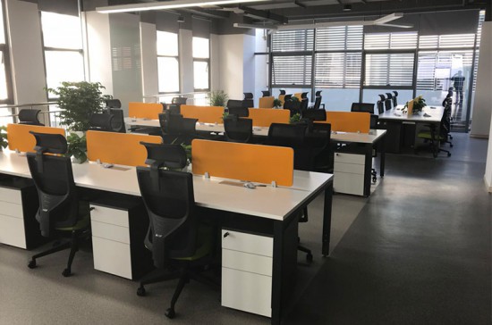 員工區(qū)主要是職員辦公使用,而職員人數(shù)最多,因此需要考慮空間的最大利用問(wèn)題。此區(qū)域一般使用到辦公屏風(fēng)進(jìn)行區(qū)域劃分和功能隔斷。辦公桌采用鋼木結(jié)合開(kāi)放式新風(fēng)尚B款職員桌,材料環(huán)保,按桌屏和