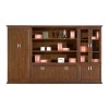 采用國(guó)家環(huán)保“福人”牌E1級(jí)高密度板,其原材料樹(shù)種一級(jí),防蟲(chóng)、防腐、強(qiáng)度高、鋼性好、不變形、比重合理,達(dá)到國(guó)際釘力測(cè)試標(biāo)準(zhǔn)。采用非洲進(jìn)口AAA級(jí)雞翅木木皮貼面,厚度為0.6mm,實(shí)木封邊,表面平整,平整度0.06mm,木皮與實(shí)木封邊拼接緊密,外表結(jié)合處縫隙小于0.1mm,線條均勻整齊,轉(zhuǎn)角過(guò)度順暢,整套產(chǎn)品或同批產(chǎn)品木材紋理,顏色基本一致。底漆德國(guó)品牌“易涂寶”,面漆臺(tái)灣品牌“大寶”涂膜硬度3H以上,漆膜表面無(wú)塵粒氣泡,渣點(diǎn),邊緣及立面無(wú)流掛現(xiàn)象。漆膜附著力1級(jí),耐磨2000轉(zhuǎn)C1級(jí),光澤N級(jí);五底三面工藝 。德國(guó)“海蒂詩(shī)”導(dǎo)軌,BMB鎖,BMB門(mén)鉸, 黑色拉絲多功能網(wǎng)絡(luò)線盒。