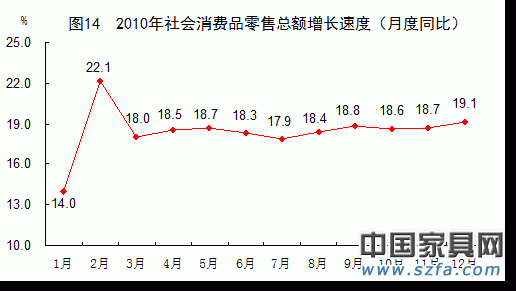 在限額以上企業(yè)商品零售額中,汽車類零售額比上年增長34.8%,糧油類增長27.9%,肉禽蛋類增長21.7%,服裝類增長25.8%,日用品類增長25.1%,文化辦公用品類增長23.5%,通訊器材類增長21.8%,化妝品類增長16.6%,金銀珠寶類增長46.0%,中西藥品類增長23.5%,家用電器和音像器材類增長27.7%,家具類增長37.2%,建筑及裝潢材料類增長32.3%。