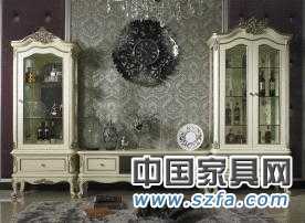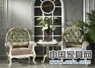 一對經(jīng)典絲絨材質(zhì)布藝休閑沙發(fā),不單是木架,就連包扣靠背都是集古典與雅致于一身,富貴典雅的造型充滿了奢華,散發(fā)出華麗的氣質(zhì)。而傳統(tǒng)法式家具圓幾上的花飾卻將整個氛圍烘托得沉穩(wěn)莊重卻又不失生機,二者搭配頗為凸出卻又耐品味。讓如此精美的展品,既是對這層風格的一個提示,同時也讓顧客的第一印象影響深刻。