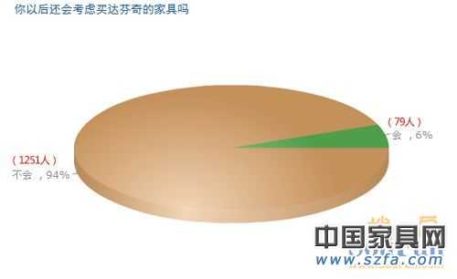 94%的受訪者表示不會再購買達(dá)芬奇家具