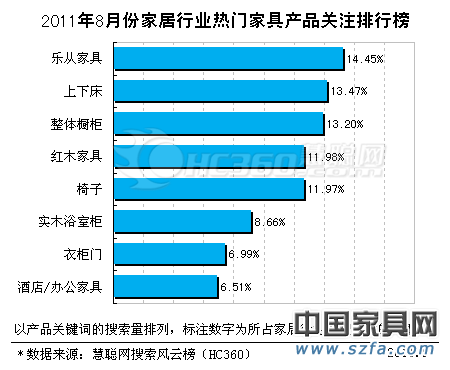 2011年8月份家居行業(yè)熱門家具產(chǎn)品排行榜