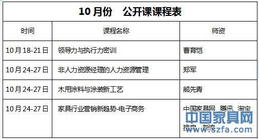 金秋十月,江西龍南中國家具產(chǎn)業(yè)教育學(xué)院2011年10月公開課將在十月下旬正式開課,歡迎瀏覽www.ifec.net.cn/?action-category-catid-30,了解課程報名詳情及報名優(yōu)惠套餐。