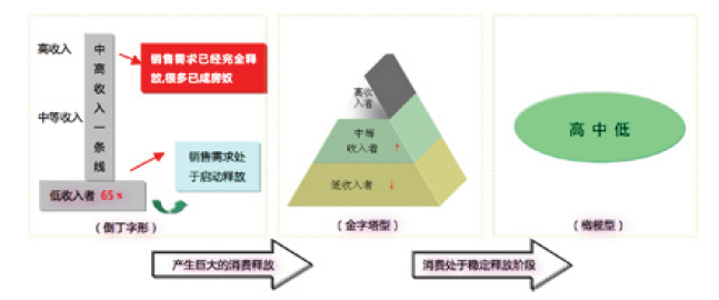 隨著城市化進程、建筑裝飾與保障房計劃的加快,居民收入的不斷增長與 消費升級,將會逐漸帶動我國“倒丁字形”人口收入社會結(jié)構(gòu)中最大比率的普 通收入階層對家具的消費動力,板式家具所占比例將會不斷攀升。尤其是未來 中國人口收入社會結(jié)構(gòu)的轉(zhuǎn)型,消費動力的釋放的龐大程度是無法預測的。