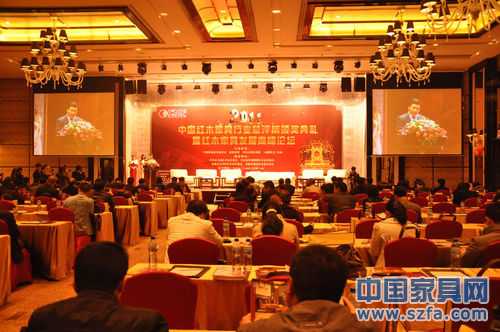 2011年12月30日,由中國傳統(tǒng)家具研究會(huì)、中國古典家具網(wǎng)、《品牌紅木》雜志、新浪家居等聯(lián)合主辦的“2011中國紅木家具行業(yè)年度總評(píng)榜頒獎(jiǎng)典禮暨紅木家具行業(yè)發(fā)展高峰論壇”盛大舉行。紅木家具行業(yè)專家、數(shù)百紅木家具企業(yè)領(lǐng)頭人、全國各紅木家具協(xié)會(huì)、市場代表、經(jīng)銷商、供應(yīng)商、消費(fèi)者代表以及眾多主流媒體出席了本屆頒獎(jiǎng)典禮。