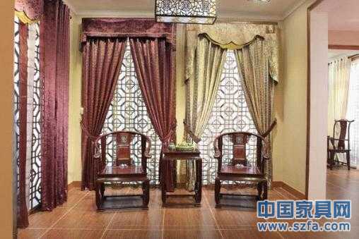 中式風(fēng)格 以古樸、典雅著稱,講究精雕細(xì)琢。窗簾面料以濃郁中國風(fēng)的絲,綢,緞,棉,麻混紡面料為主。