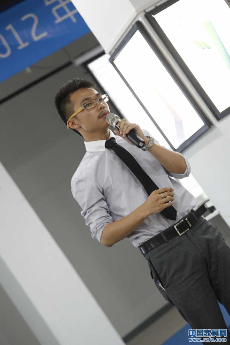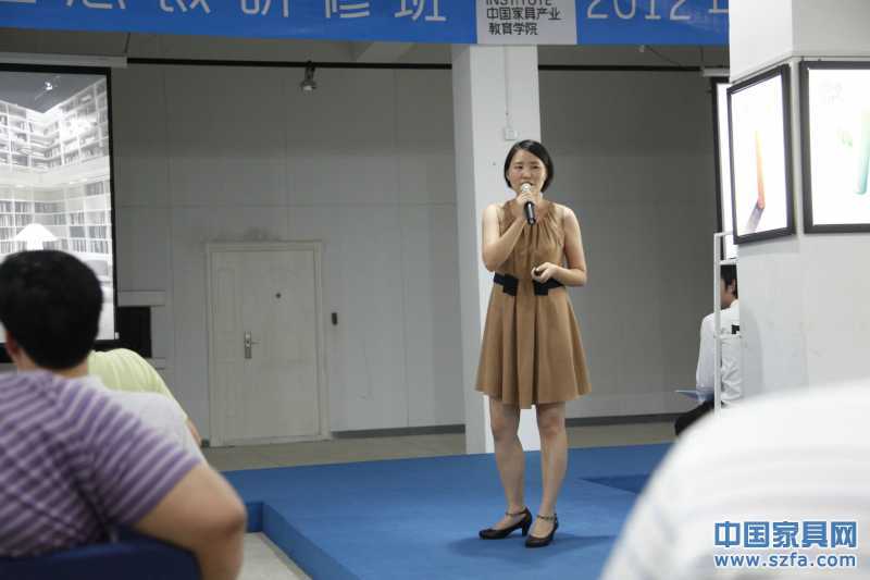 深圳市家具研發(fā)院戰(zhàn)略規(guī)劃師崔卓君正在進(jìn)行國際標(biāo)桿品牌潮流解析