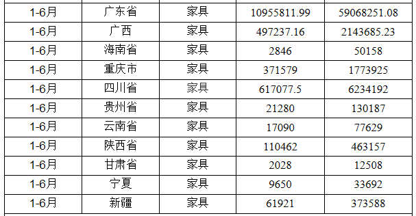 核心提示:2012年1-6月中國家具分省市產(chǎn)量數(shù)據(jù)統(tǒng)計(jì):
