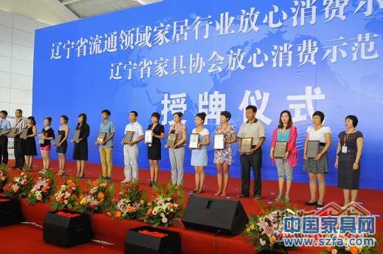 作為本次沈陽國際家具博覽會的重頭戲,遼寧省“放心消費示范商戶”、第一批“放心消費示范店”創(chuàng)建單位授牌儀式于17日上午11:00在沈陽市國際展會中心二樓登陸廳隆重舉行。遼寧省經濟和信息化委員會副主任藺曉剛、遼寧省工商行政管理局副局長李長春,遼寧省工商行政管理局消保處副處長李京等領導出席了表彰大會。