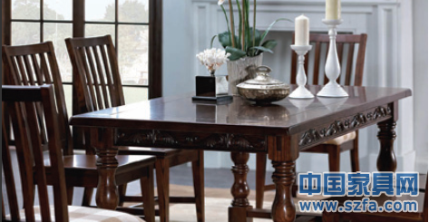 北美之家將這種莨苕葉紋飾運用在桌邊沿,用來寓意吉祥如意、祈求平安,工藝精湛、形象逼真的傳統(tǒng)手工雕刻卻是用機械加工而成,運用這種古典裝飾紋樣,使得家具承繼了貴族的大氣雍雅和高貴。