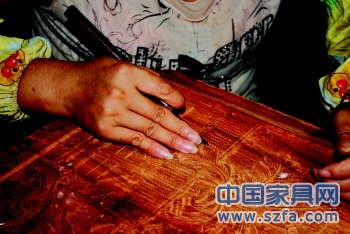 同順和紅木家具廠的技師為客戶定制的家具雕刻花紋