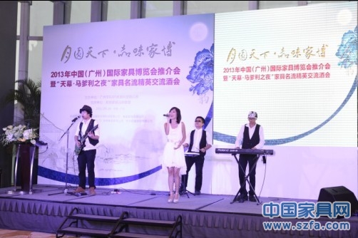 晚上舉辦的“天幕·馬爹利之夜”家具名流精英交流酒會,旨在慶祝2013年中國(廣州)國際家具博覽會推介會成功舉辦和廣州市020F家具俱樂部成立兩周年。中國對外貿(mào)易廣州展覽總公司華佳分公司副總經(jīng)理陳旺輝,中國家具品牌聯(lián)盟監(jiān)事會主席、康升集團總裁劉永康,“標榜豆”安居豆生物科技有限公司董事總經(jīng)理曾憲敏等出席并致辭。酒會假座廣交會琶洲威斯汀酒店最高層峰景軒隆重舉行,一方面展示了主辦單位對于廣州家具展、家具行業(yè)發(fā)展前景的必勝信心,另一方面也展示了廣州家具展、廣州市020F家具俱樂部與廣大家具行業(yè)企業(yè)家攜手同心、共贏發(fā)展的堅定勇氣。酒會現(xiàn)場座無虛席、氣氛融洽,加強了展商之間的聯(lián)誼互動和企業(yè)之間的交流合作,將進一步助推中國家具行業(yè)企業(yè)共贏發(fā)展。