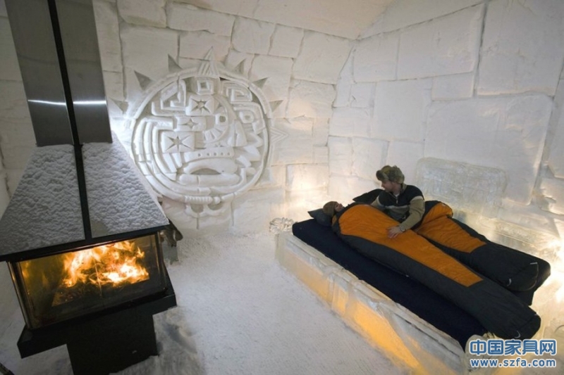 魁北克冰酒店的特色客房,建有燃?xì)獗跔t。