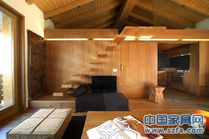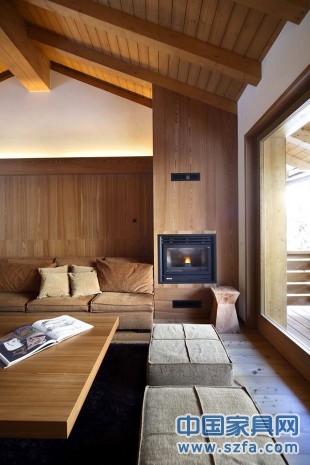 你即將進入一個全部由木材建造的地方,從地板、天花板甚至是家具,所有的一切都為木質(zhì),這種獨特的細節(jié)將這個公寓裝點得無比迷人、溫馨,讓人眼前一亮。這是一棟能讓你聯(lián)想到滑雪度假村的公寓。