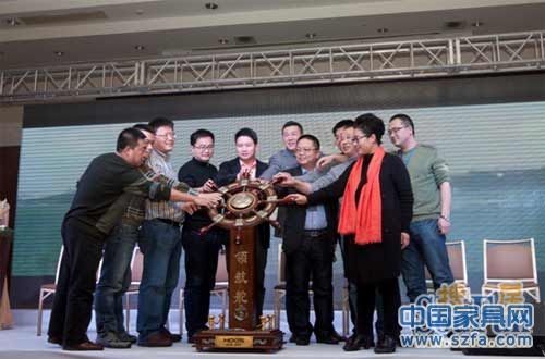 接著副總裁營(yíng)銷中心總經(jīng)理張凡亮先生作了題為“新希望”的重要講話,分析、總結(jié)了南洋胡氏集團(tuán)2012年的輝煌業(yè)績(jī),并對(duì)今后集團(tuán)的發(fā)展作出新要求新規(guī)劃。第三個(gè)板塊“新傳奇”篇,主題為“Hoo’s 巔峰聚會(huì) 高層論壇”,由胡也國(guó)先生親自主持。座談會(huì)上,胡也國(guó)先生與2012年南洋胡氏集團(tuán)全國(guó)前10名優(yōu)秀經(jīng)銷商一起,分享了珍貴的營(yíng)銷經(jīng)驗(yàn),對(duì)2013年作出重要展望。經(jīng)銷商朋友們一致表示愿始終與南洋胡氏集團(tuán)攜手努力,實(shí)現(xiàn)2013年最大化的雙贏。緊接著,胡也國(guó)先生邀請(qǐng)眾人共同轉(zhuǎn)動(dòng)起航舵,隨著砰的一聲金色禮花騰空而起無數(shù)顆流星閃過, LED屏上一艘壯觀雄偉的郵輪在巨大的嗚嗚聲中緩緩駛出港灣,波瀾壯闊、勢(shì)如破竹,整場(chǎng)晚會(huì)的氣氛達(dá)到了最高點(diǎn)。氣勢(shì)恢宏的郵輪似乎預(yù)示著2013的南洋胡氏集團(tuán)將勢(shì)不可擋,新品“烏金印象”、“新?瑞格楠”及“胡桃先生”、“維藍(lán)國(guó)際”、“瑞格楠”,五大品牌將在市場(chǎng)上掀起巨大的波浪,開創(chuàng)實(shí)木家具行業(yè)不可撼動(dòng)的霸主地位。