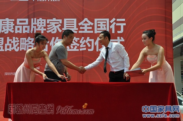 上午10點(diǎn)30分,“中國南康品牌家具全國行”百家戰(zhàn)略聯(lián)盟合作簽約儀式在中心市場(chǎng)隆重舉行,佳興置業(yè)有限公司總經(jīng)理、南康家具產(chǎn)業(yè)促進(jìn)局副局長以及江西省家具協(xié)會(huì)家居商場(chǎng)聯(lián)合會(huì)領(lǐng)導(dǎo)發(fā)表了重要致辭。