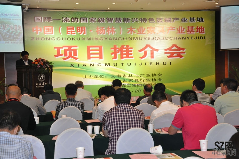 2013年9月28日,中國(昆明·楊林)木業(yè)家具產業(yè)基地項目推介會在中國東部家具商貿之都——蘇州蠡口盛大舉行。本次活動由云南省林業(yè)產業(yè)協會、云南省家居行業(yè)協會、昆明森工集團主辦。國家林業(yè)部駐云南專員辦專員凌鶴、云南家具協會會長席輝、森工集團董事長張張明昌、蠡口家協會會長王金坤,秘書長顧建中以及來自來自江蘇、浙江等華東地區(qū)各家具企業(yè)負責人、新聞媒體一百多人共同見證了此次盛會。