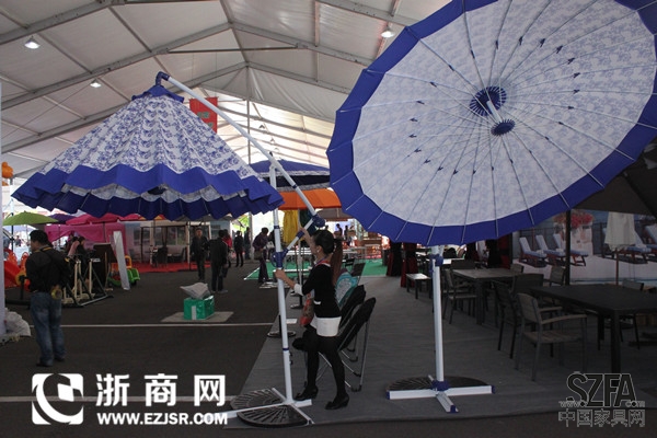 青花瓷底紋的遮陽傘、雞蛋殼似的戶外秋千、全原木結(jié)構(gòu)的小別墅·······10月28號的這一天,第二屆中國(臨海)戶外家具及庭院休閑用品展覽會開幕,臨海市體育中心內(nèi)擺滿了各式樣新奇又雅致的戶外家具。