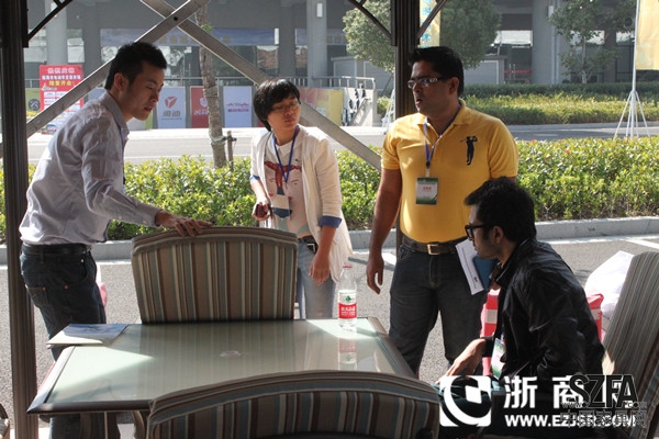 除了各式各樣的戶外家具展品,摩肩接踵的人群里不時(shí)走過幾個(gè)金發(fā)碧眼的外國人。