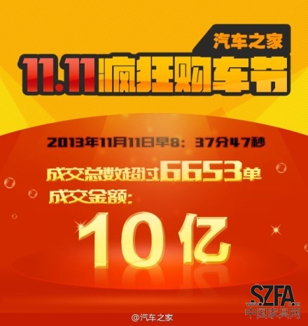 汽車之家成阿里系外最大亮點(diǎn)。11月11日零時(shí)30分,汽車之家瘋狂購車節(jié)成交總數(shù)超過4000單,成交總額超過6個(gè)億,十幾分鐘賣出去了3000多輛汽車。