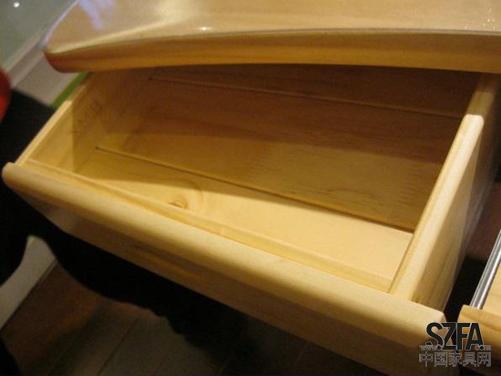 打開抽屜我們可以看到,整個抽屜內外都是采用原木,用材相當?shù)睾竦?,這是市面上所少有的。表面打磨光滑,無毛刺。書桌臺面下非常貼心地的安置了抽屜,如此,一些不愿擺放桌面的零碎雜物或貴重品都可收納其中。
