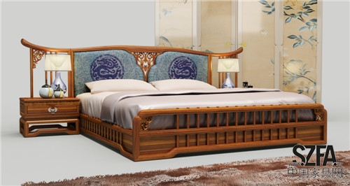 靈感源于乾隆年間的小葉紫檀鑲嵌黃楊木羅漢床。用大葉紫檀與緬甸花梨結合,重現(xiàn)珍貴紅木鑲嵌工藝;保留傳統(tǒng)工藝,以裝飾主義的手法,將自然的紋飾(牡丹,吉祥草)與吉祥紋飾(夔龍紋,回紋)結合,體現(xiàn)富貴吉祥的寓意;創(chuàng)新運用異型、曲線等現(xiàn)代元素,同時簡化繁瑣的雕刻,將品質(zhì)與時尚融為一體。
